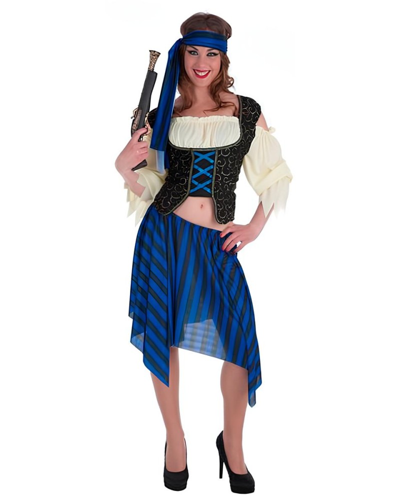 Disfraz de Pirata Bucanera Adulto Mujer. Embárcate en la aventura con este auténtico disfraz de pirata para mujer. Ideal para fiestas temáticas, Halloween o carnaval, este conjunto te transformará en una audaz bucanera lista para conquistar los siete mares. Comodidad y estilo se unen para que disfrutes al máximo de cada celebración.