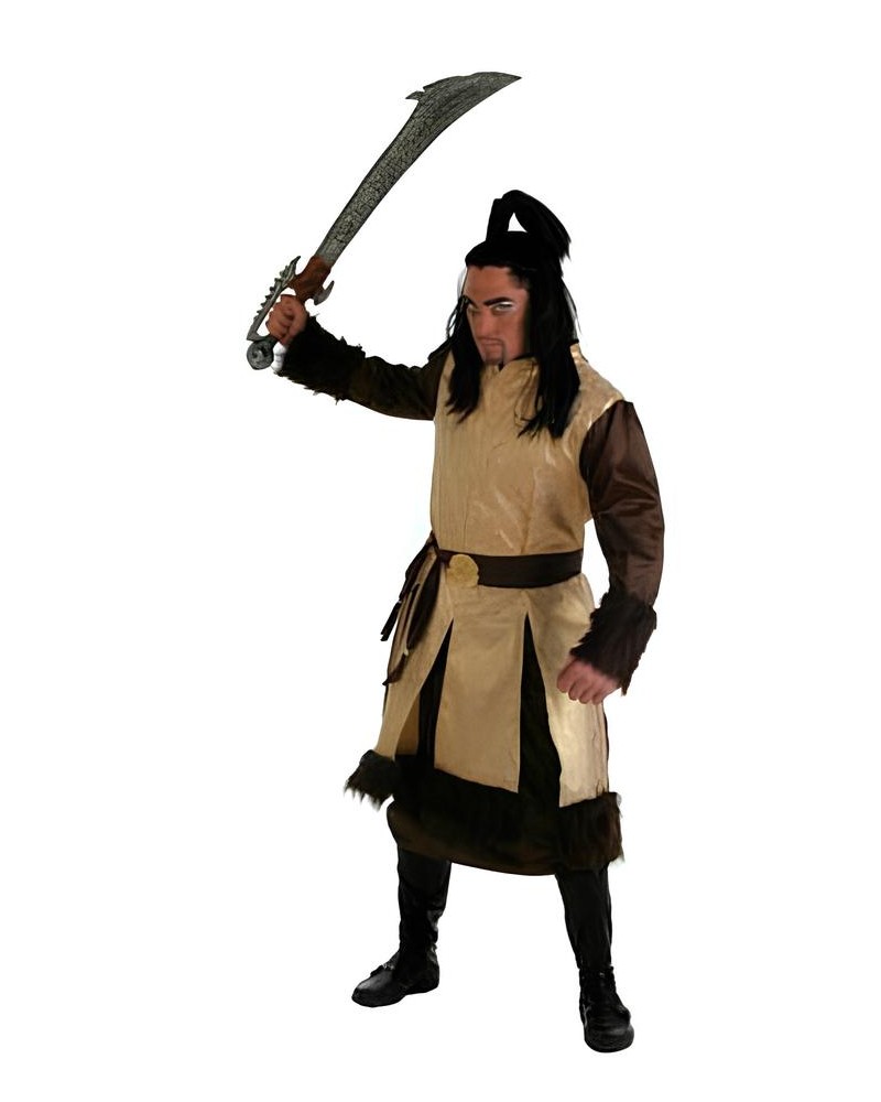 Para un ajuste óptimo, ponte primero la falda pantalón y luego la levita. Ajusta el cinturón a la cintura. Coloca los cubre botas sobre tu calzado habitual y completa el look con la muñequera y el sable. ¡Listo para reinar!