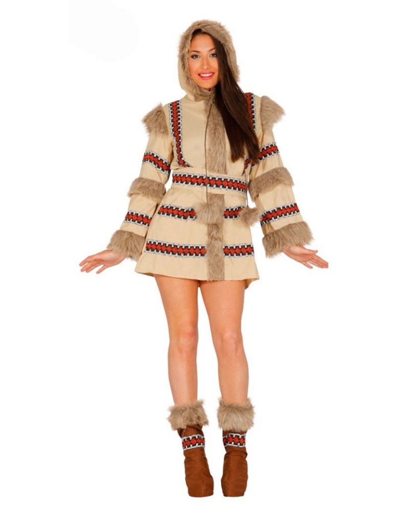 Disfraz de Esquimal Adulto Mujer: Transfórmate en una auténtica habitante del Ártico con este cómodo y atractivo disfraz. Perfecto para destacar en fiestas de disfraces, carnaval o cualquier celebración temática, aportando un toque divertido y original a tu evento.