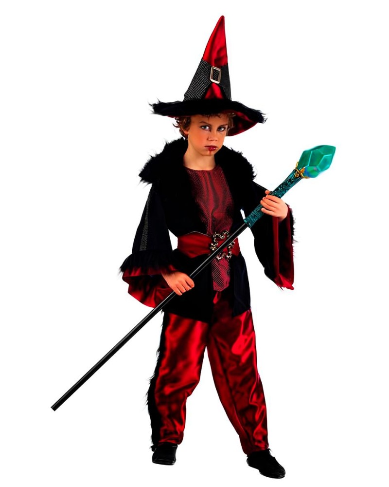 Vestir primero el pantalón y la chaqueta con camisa integrada, ajustar el cinturón y colocar el sombrero de brujo para completar el look. Perfecto para fiestas de Halloween, carnavales, obras de teatro escolar y juegos de fantasía en casa.