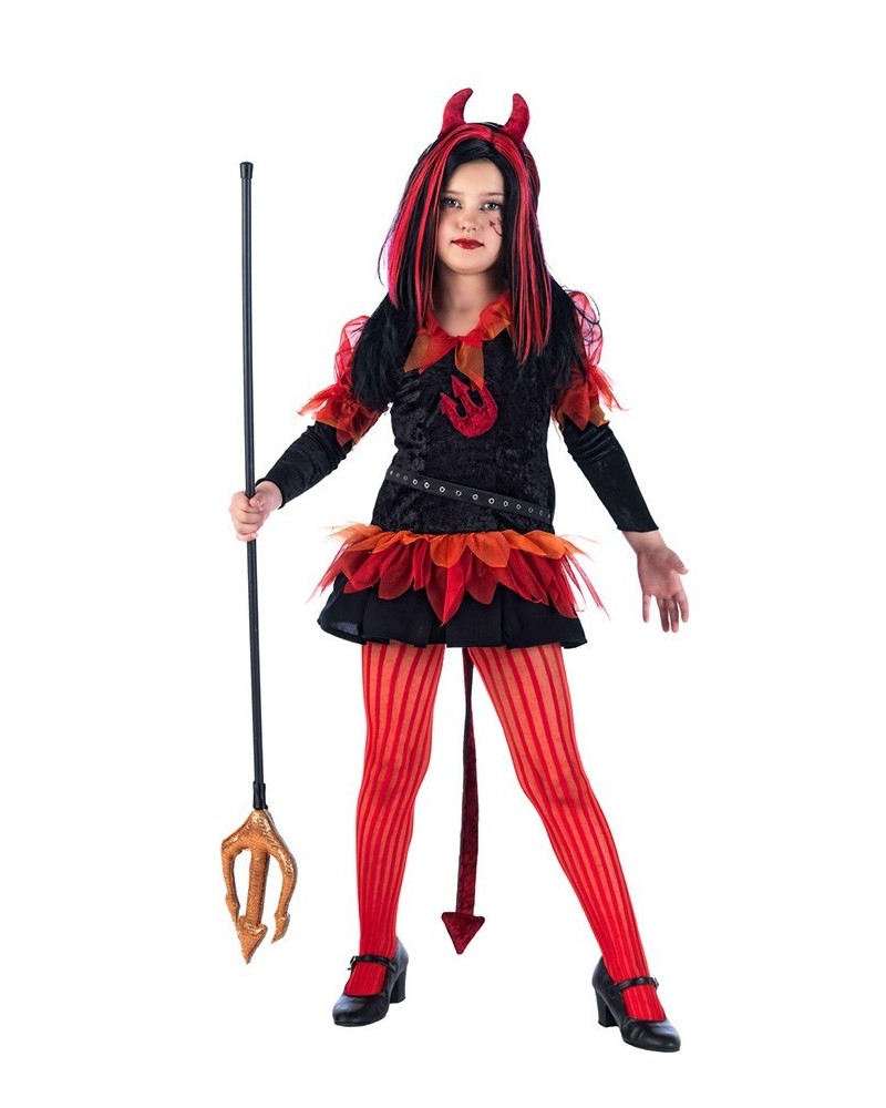 Disfraz de Diablesa Noa Infantil. Sumérgete en un mundo de misterio y elegancia con este disfraz inspirado en la serie Mascarada. Perfecto para fiestas temáticas y juegos imaginativos, este atuendo de alta calidad, fabricado en España, te permite destacar con un estilo infernal y sofisticado. Ideal para crear momentos inolvidables llenos de diversión y originalidad.
