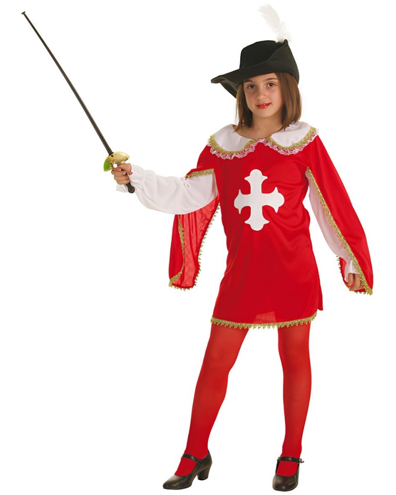 Disfraz de Mosquetera Infantil Niña: Despierta la valentía y la elegancia en tu pequeña. Perfecto para fiestas de disfraces y juegos imaginativos, este disfraz sencillo y funcional permite que tu hija se convierta en una auténtica mosquetera, fomentando la creatividad y la diversión segura.