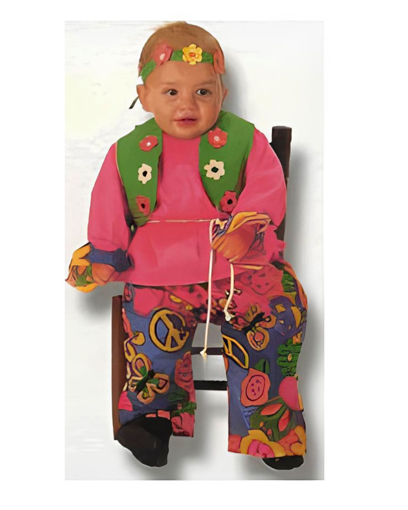 Disfraz de Hippy para Bebé: Viste a tu pequeño con un estilo bohemio único y comodidad inigualable. Perfecto para fiestas temáticas, celebraciones familiares o simplemente para añadir un toque de diversión y aventura a su día a día. Un diseño artesanal que destaca por su calidad y detalle, garantizando un look auténtico y relajado para tu bebé.