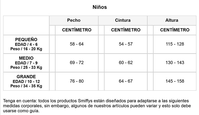 Talla: M 7-9, 25-33 Kg, pcho 69-72, cintura 60-62, al 130-143 cm.